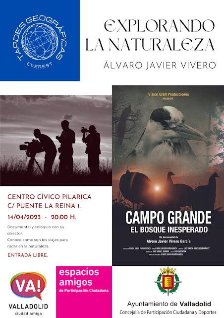 Continuamos con nuestro ciclo de Tardes Geográficas. En esta ocasión contaremos con la colaboración y el buen hacer de Álvaro Javier Vivero director de documentales de naturaleza. Tendremos ocasión de ver su documental "Campo Grande. El bosque inesperado" y posteriormente charlaremos un poco con él.