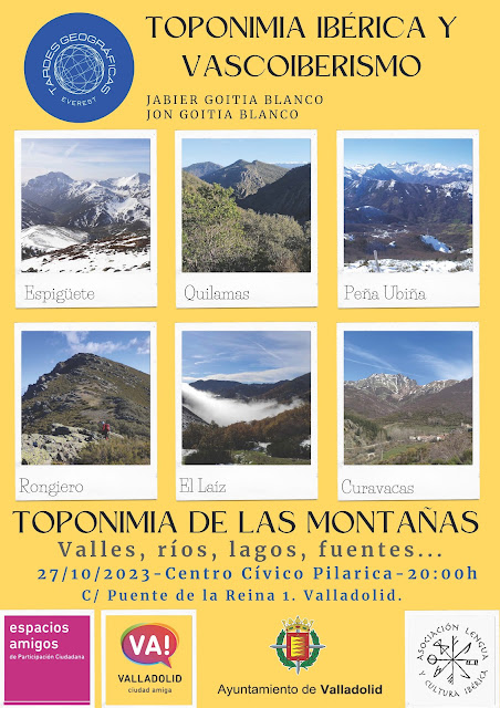 Retomamos nuestras charlas que hemos venido a llamar Tardes Geográficas, esta vez sobre el tema de los nombres de las montañas y su origen, a cargo de los hermanos Jabvier y Jon Goitia Blanco, de la Asociación Lengua y Cultura Ibérica.